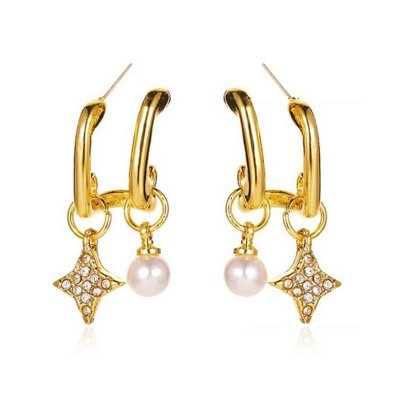 Flamenco Mystique Dvojne viseče uhane s kristali in biseri, hipoalergene, brez niklja in kromov