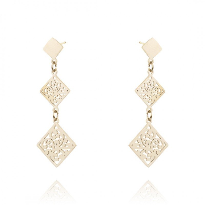Flamenco Mystique Kovinske uhane iz kirurgične jeklene, pozlačene z 14 karatnim zlatom, dimenzije 4,5 x 1 cm, tip zapiranja z vložkom