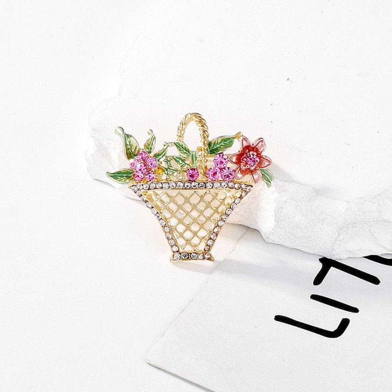 Flamenco Mystique Kristalna broška v obliki košarice s cvetlicami, 4,2 x 3,8 cm, brez niklja in kroma