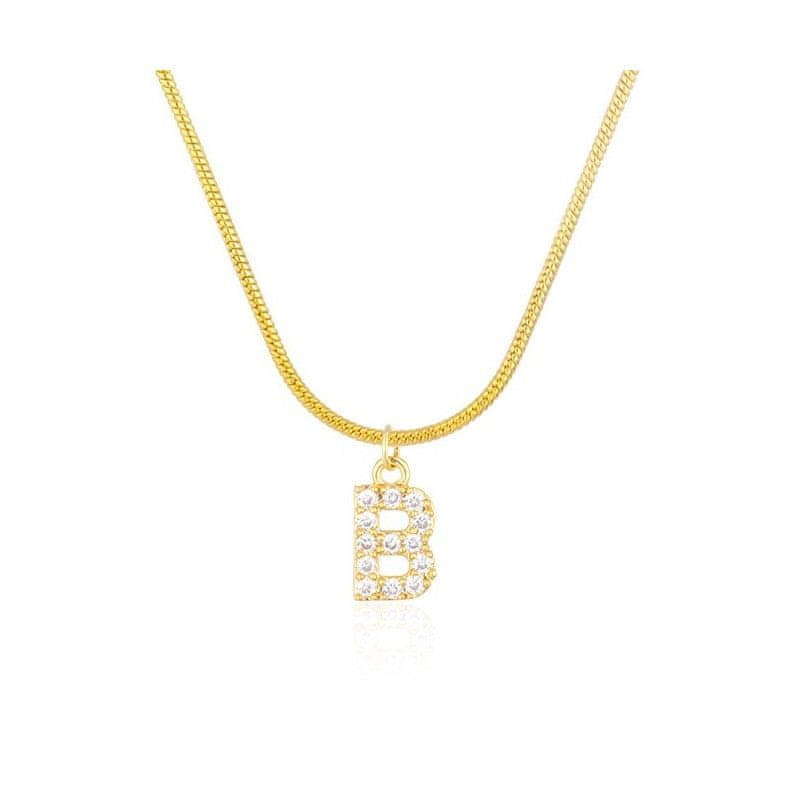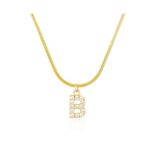 Flamenco Mystique Ogrlica iz kirurške jekla s črko B, pozlačena s 14K zlatom, dolžina 46 cm, sijoče zlato