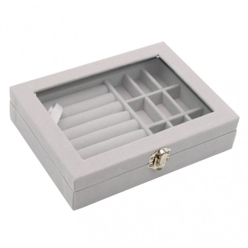 Flamenco Mystique Škatla za nakit PD132SZ, siva velur tkanina, zunanje dimenzije 20x15x5 cm