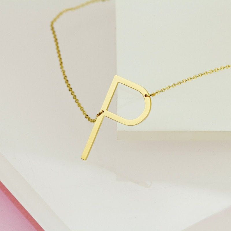 Flamenco Mystique Zlateni ogrlica iz kirurške jekla z črko P, dolžina 45+4 cm, odporna proti koroziji