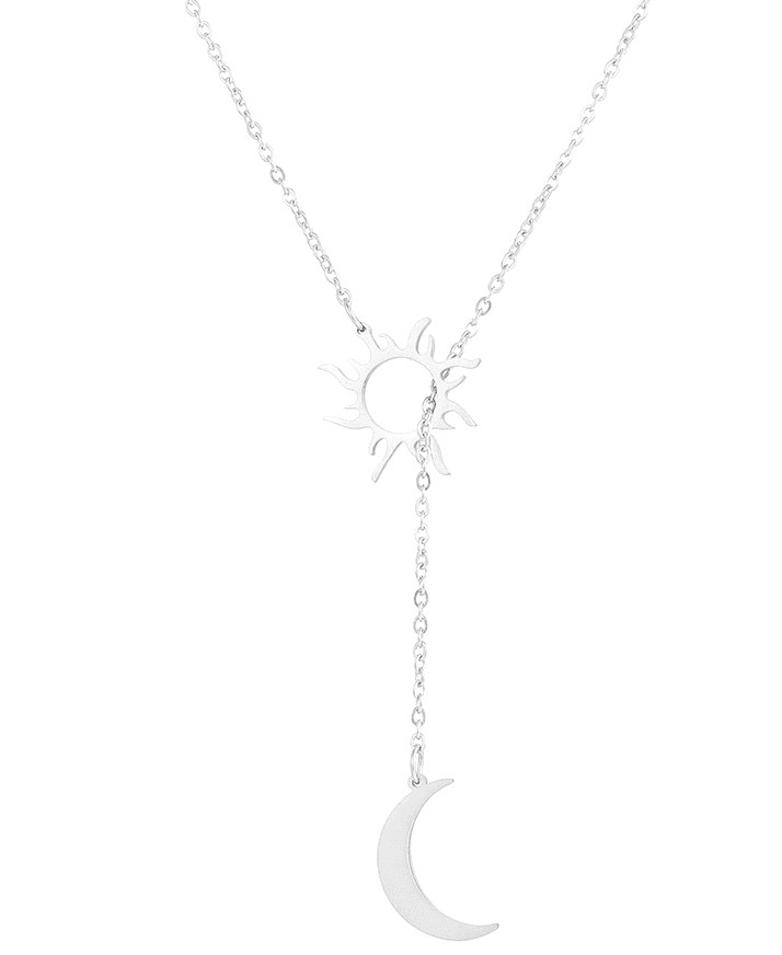 For Fun & Home Dolg obesek iz kirurške jekla 316L, srebrne barve, z obeski sonca in lune, dolžina 60 cm
