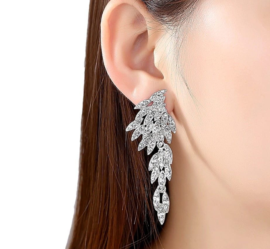 For Fun & Home Dolge srebrne uhane s kristali cirkona za poroko ali zabavo, zapiranje na potisk, 7 cm x 2 cm
