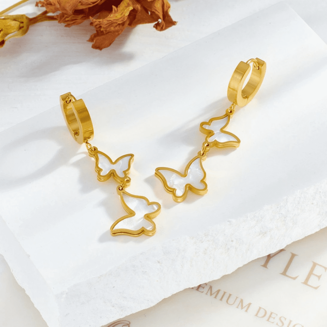For Fun & Home Dolge uhane s metuljnim obeskom, zlata kirurška jeklo 316L, dolžina 4,5 cm