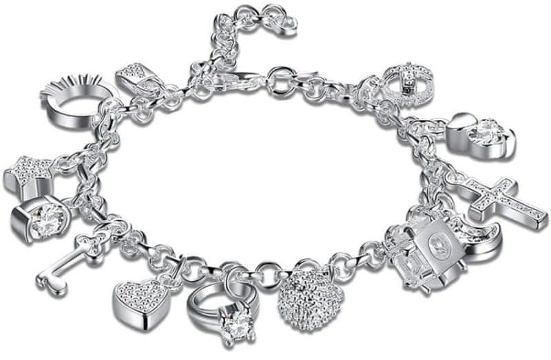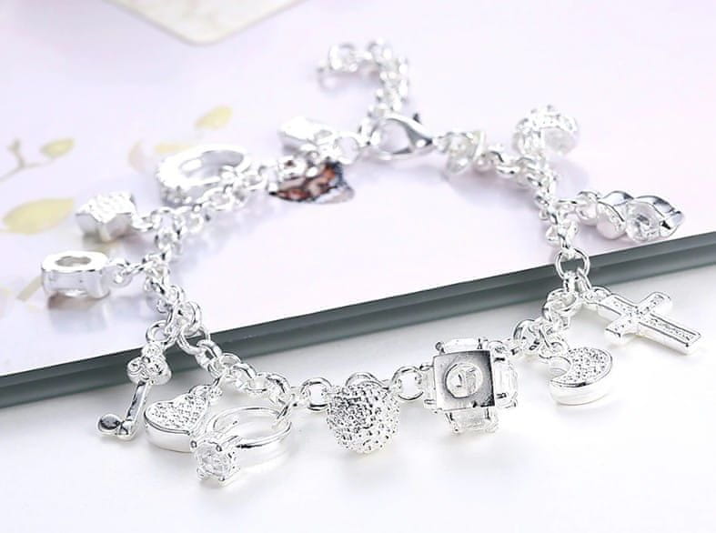 For Fun & Home Elegantna srebrna zapestnica z 13 obeski, dolžina 19 cm, zapiranje na karabinko