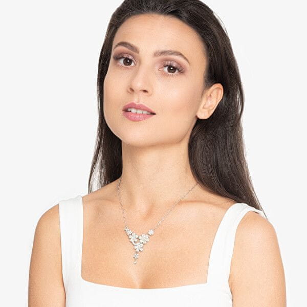 • set s pisanimi cirkoni v obliki rož in metuljev, ki dodajo bleščečo iskrivost celoti,