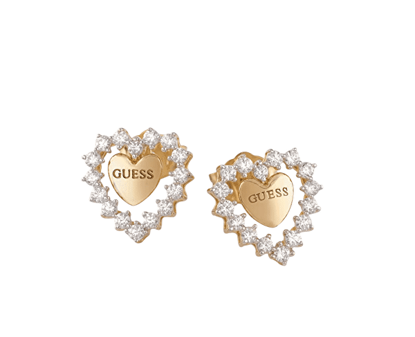Guess Pozlačeni uhani Srce s cirkoni Jardin JSBE04455JWYGT/U