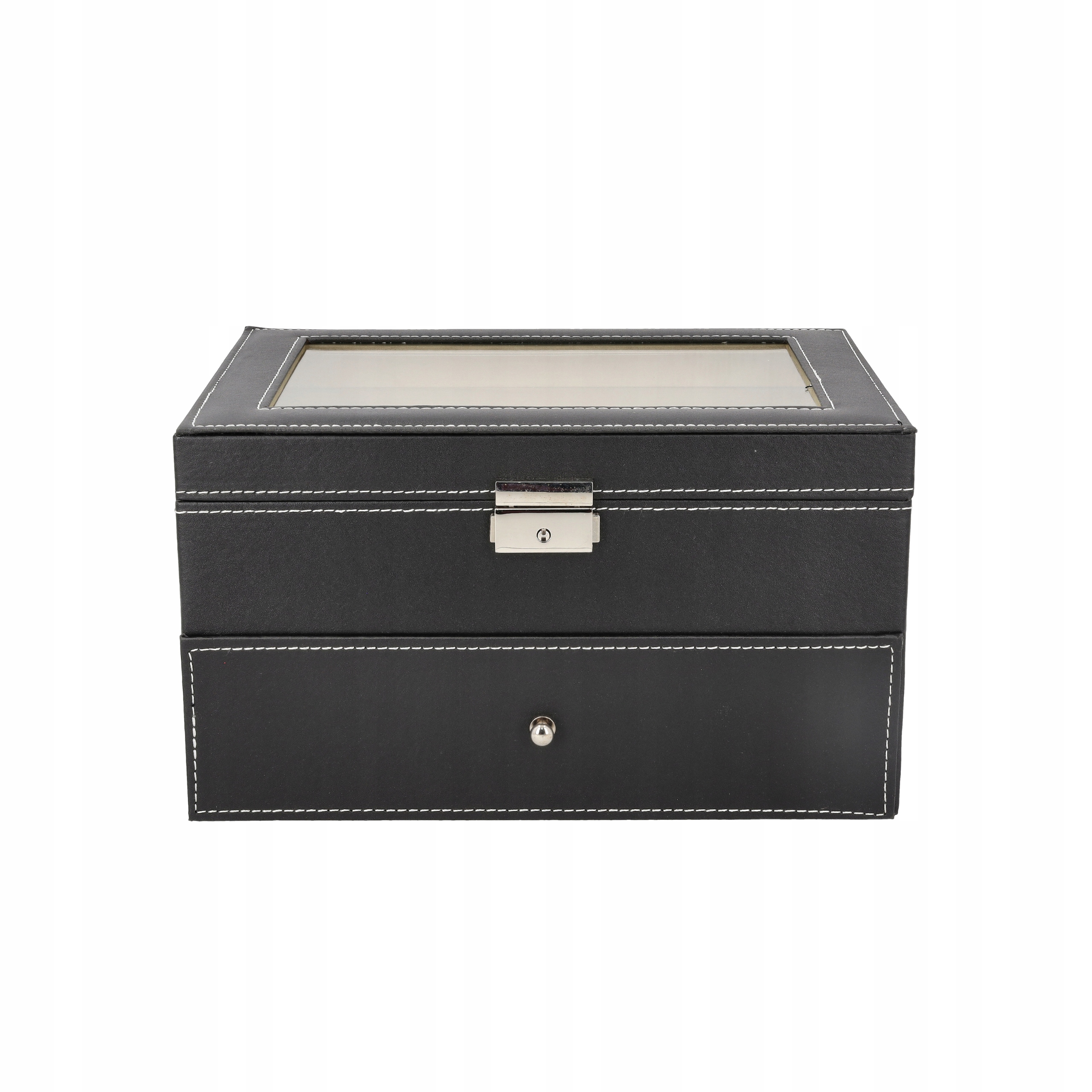Dvoetažna zasnova omogoča shranjevanje kar 20 ročnih ur v enem kompaktnem etuiju. Spodnji predal je idealen za dodatke, kot so zapestnice ali verižice, kar omogoča organiziranost in prihranek prostora na polici ali toaletni mizici.