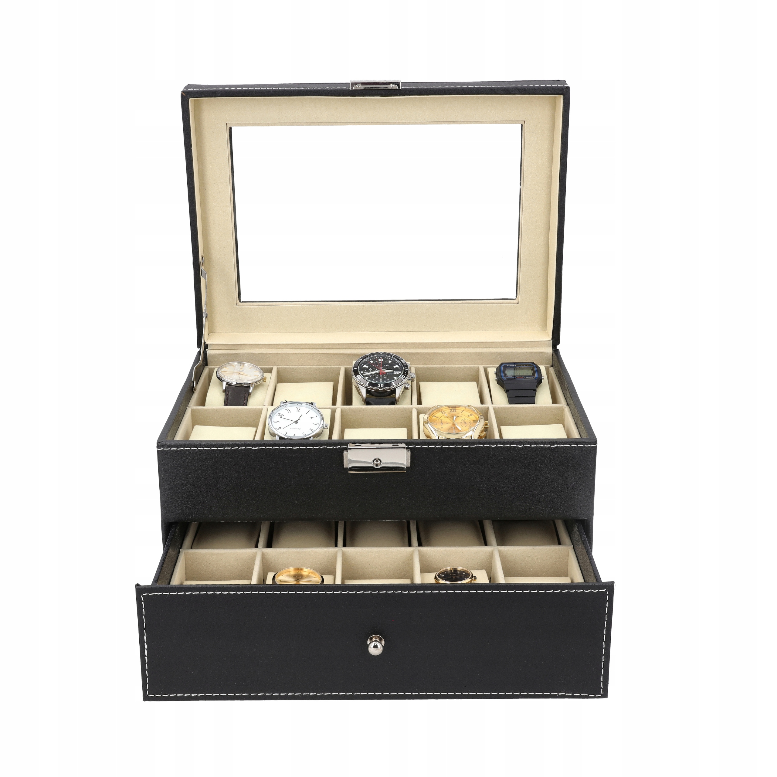 ✅ Etui za 20 ročnih ur je popolna rešitev za zbiratelje in ljubitelje ur, ki želijo svojo zbirko shranjevati varno in elegantno. Izdelano iz visokokakovostnih materialov, nudi zaščito pred prahom, praskami in poškodbami, hkrati pa omogoča estetsko razstavljanje ur.