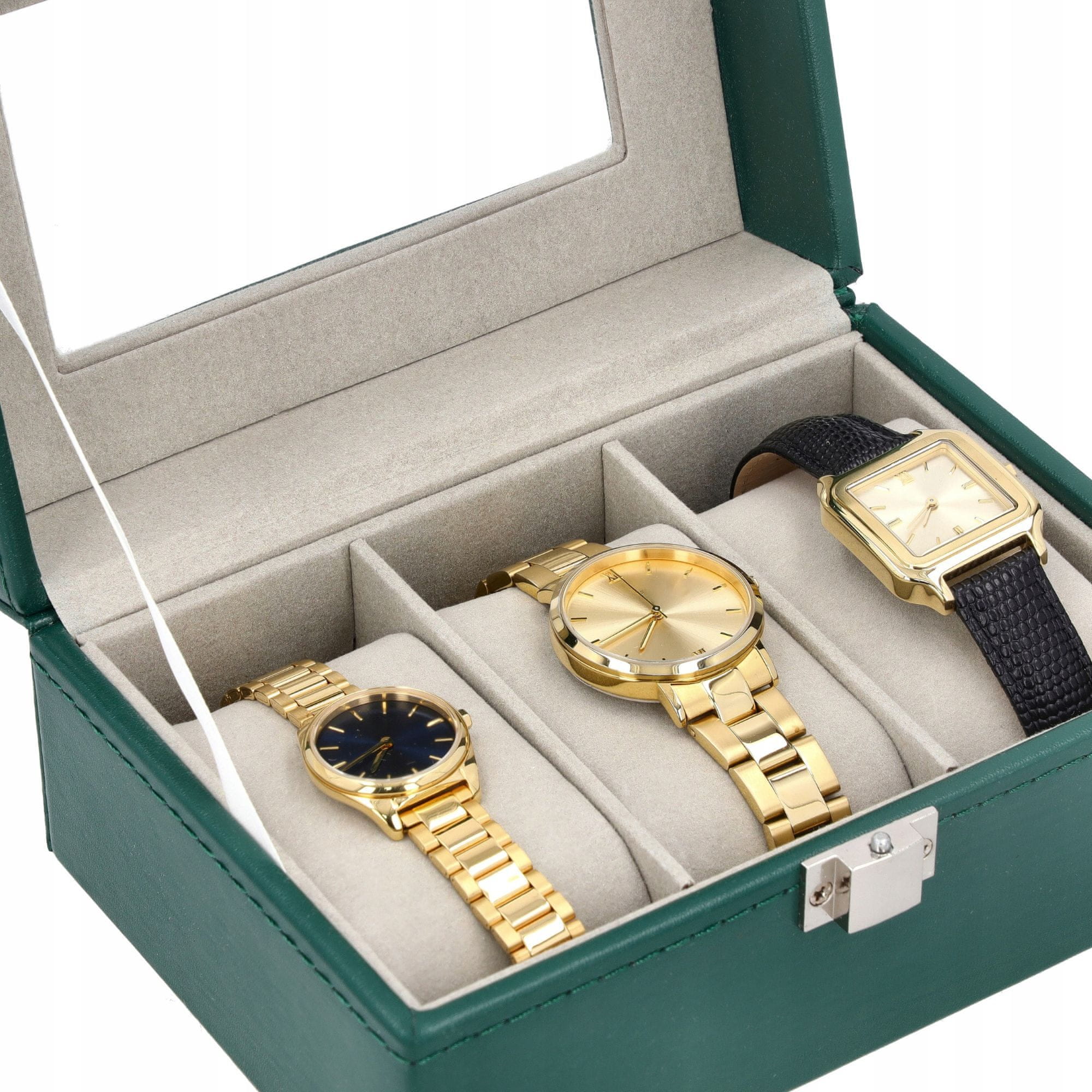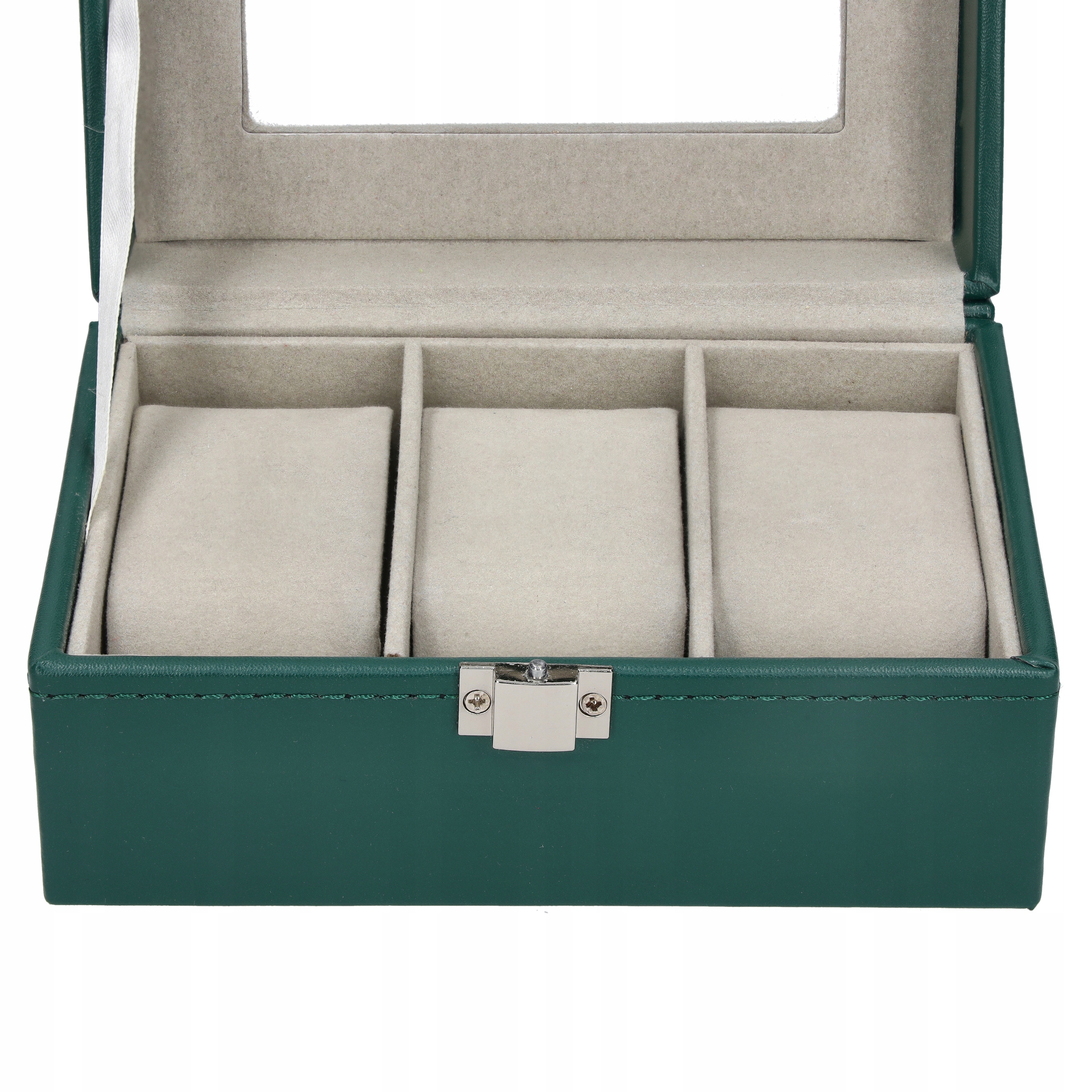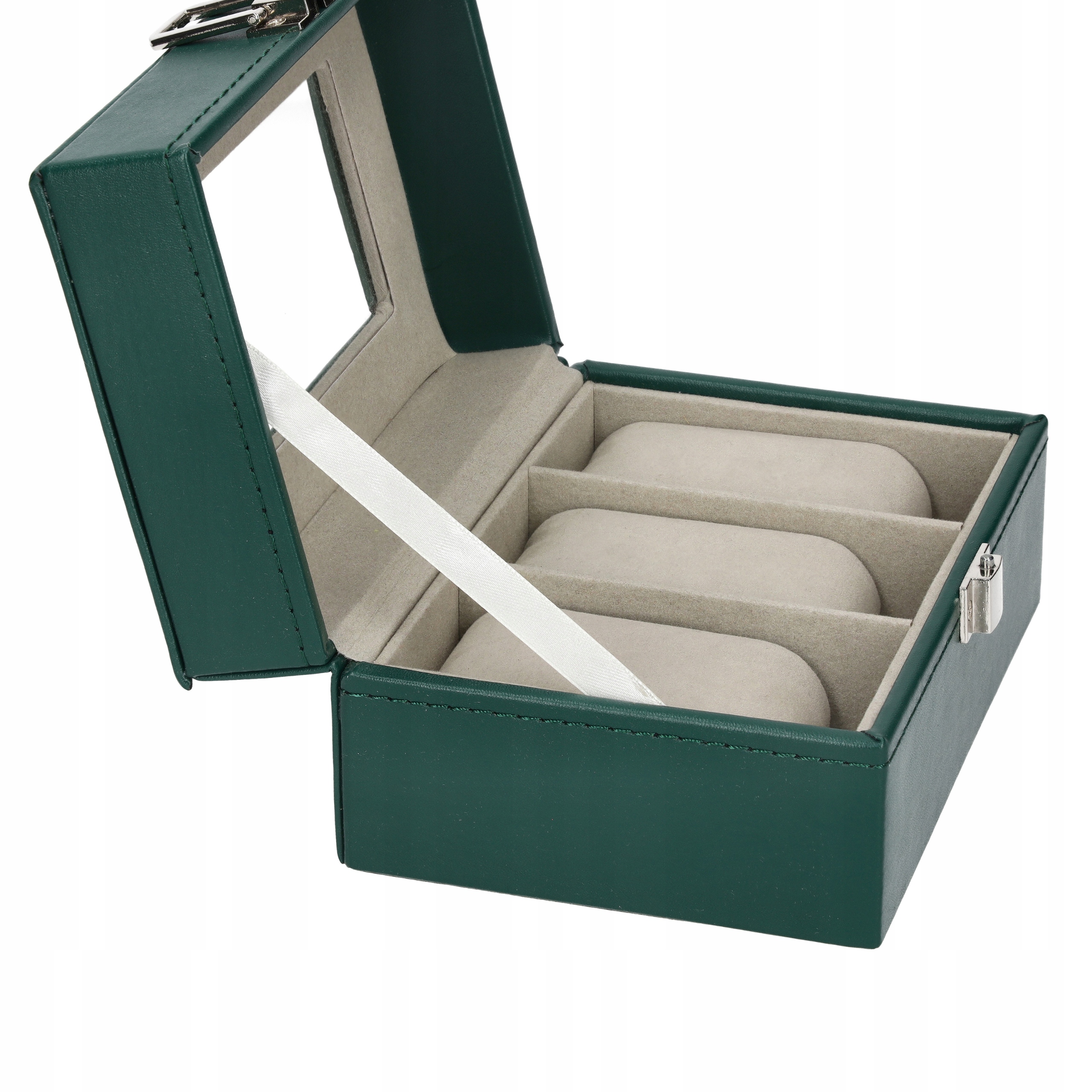 Prozorno stekleno okence omogoča hiter pogled na vsebino, kovinska ključavnica pa zagotavlja dodatno varnost. Zahvaljujoč odstranljivim blazinicam, etui lahko uporabite tudi za zapestnice ali droben nakit.