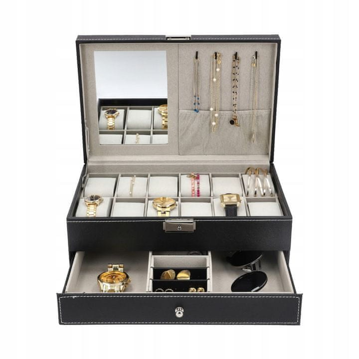 ✅ Večnamensko shranjevanje – Ločeni prostori za ure, nakit in dodatke v eni škatli.