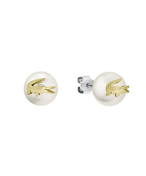Lacoste Originalni biserni uhani s krokodilčkom Matchpoint 2040432
