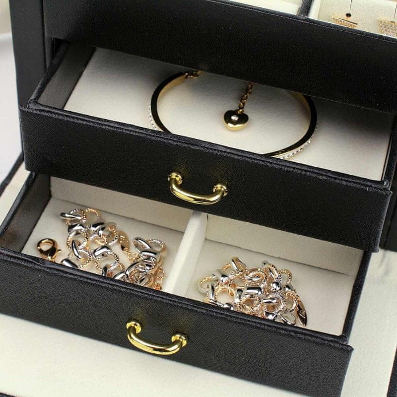 Škatla za nakit Livefy Luxe združuje slog, funkcijo in zaščito, da vam zagotovi popoln prostor za shranjevanje vašega nakita. Zahvaljujoč premišljenim predelkom in kakovostnemu dizajnu je idealno mesto za prstane, uhane, zapestnice in ogrlice, ki bodo zaščiteni pred poškodbami in vedno pregledno razporejeni.