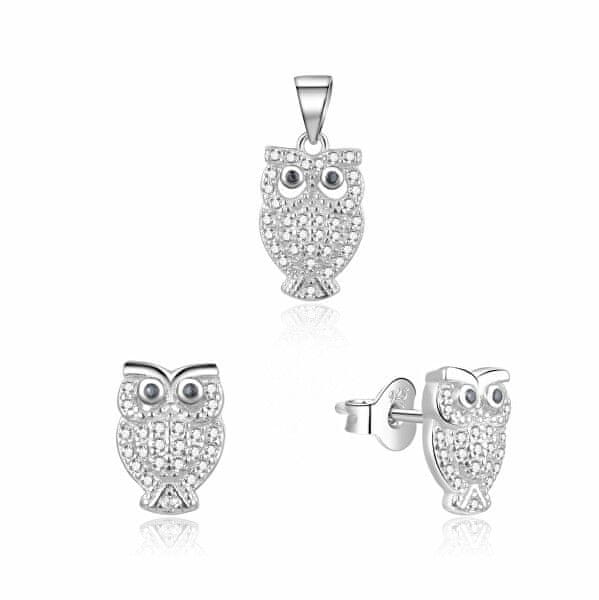 MOISS Igriva srebrna sova Sovičky (obesek, uhani)