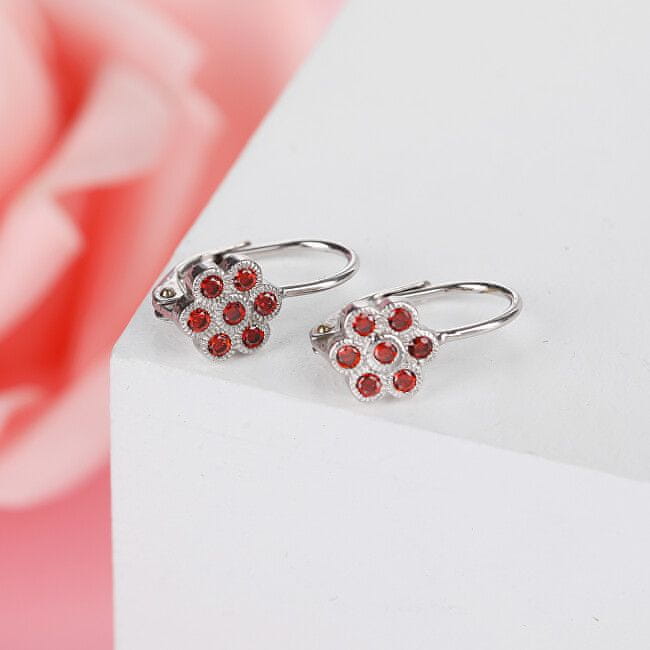 MOISS Razigrani srebrni uhani z rdečimi cirkoni Rože E0002229