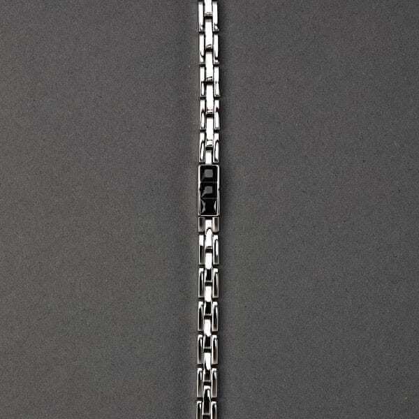 • brezčasen dizajn povezav, okrašen s tri brušenimi črnimi cirkoni,