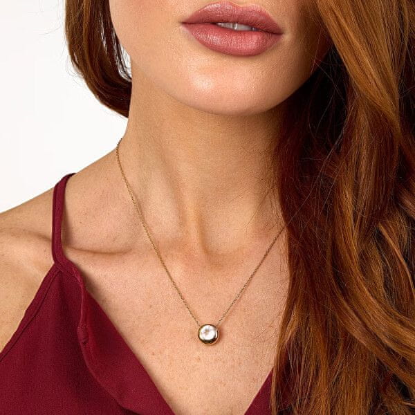 Očarljiva pozlačena ogrlica s polprezioznim rožnatim kremenom SAXN04. Celoten opis