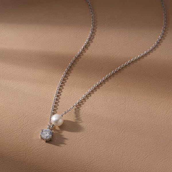 Srebrna ogrlica s pravim biserom in cirkonom Perla SXU54. Celoten opis