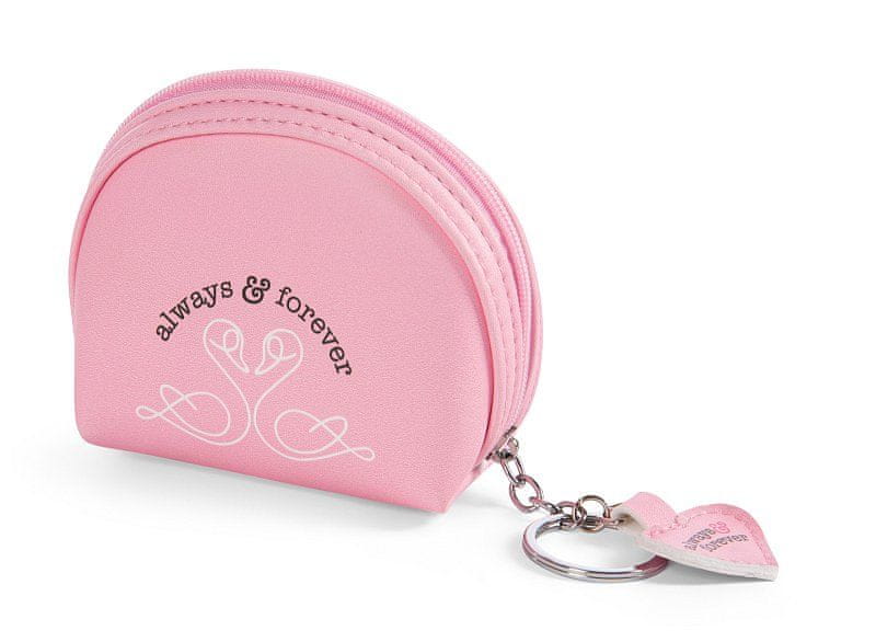Par labodov, katerih vratovi tvorijo srce, velja za simbol večne ljubezni. Dva laboda LOVE iz kolekcije LOVE Classic blagovne znamke NICI krasita roza svinčnik, ki ima tudi trden kovinski obesek za ključe. Očarljiv, a praktičen svinčnik z zadrgo ponuja prostor za kovance, pripomočke za ličenje, pisala ali druge drobne predmete in je opremljen z obeskom srca „always & forever“. Svinčnik je del pobude NICI GREEN, katere izdelki so izdelani iz recikliranih materialov, kot so stare plastenke PET. Dimenzije: 11×5×9 cm. Starost: 3+