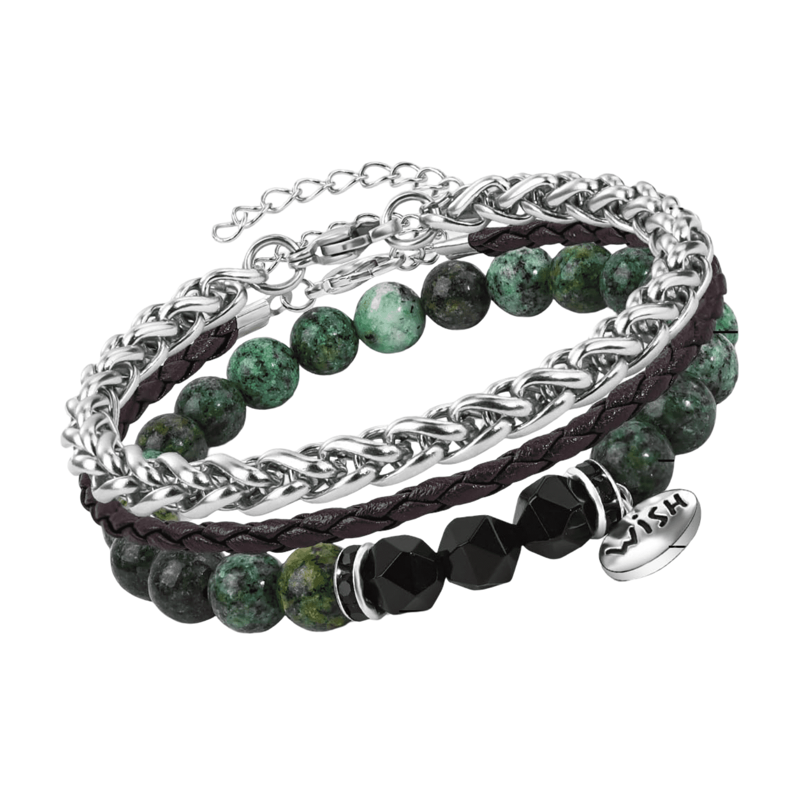 Komplet zapestnic MANVEN je odlična izbira za tiste, ki iščejo kakovosten nakit z globljim pomenom in visokim standardom izdelave. Kombinacija različnih materialov naredi izdelek izjemno vsestranski, trdne zaponke pa zagotavljajo varno uporabo. Izberite ta stilski darilni set kot simbol pozornosti za rojstni dan ali obletnico in dopolnite svojo podobo s sodobnim modnim dodatkom.