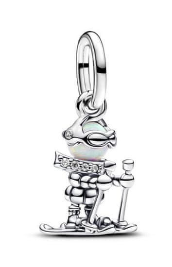 Pandora Srebrn obesek Smučar s sintetičnim opalom 793514C01