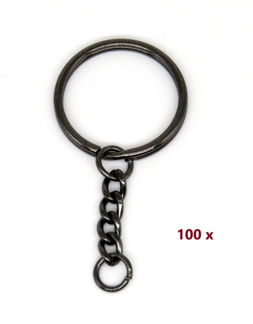 PTI Rinka 28 mm sivkaste barve z verigo in majnim oborčkom za pritrditev obeskov, rinka za ključe 100 kosov