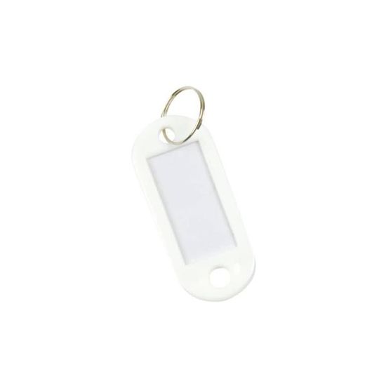 Pisana plastična etiketa z luknjo, kovinskim obročkom in nalepko za opis Vsako pakiranje vsebuje 10 etiket Celoten opis
