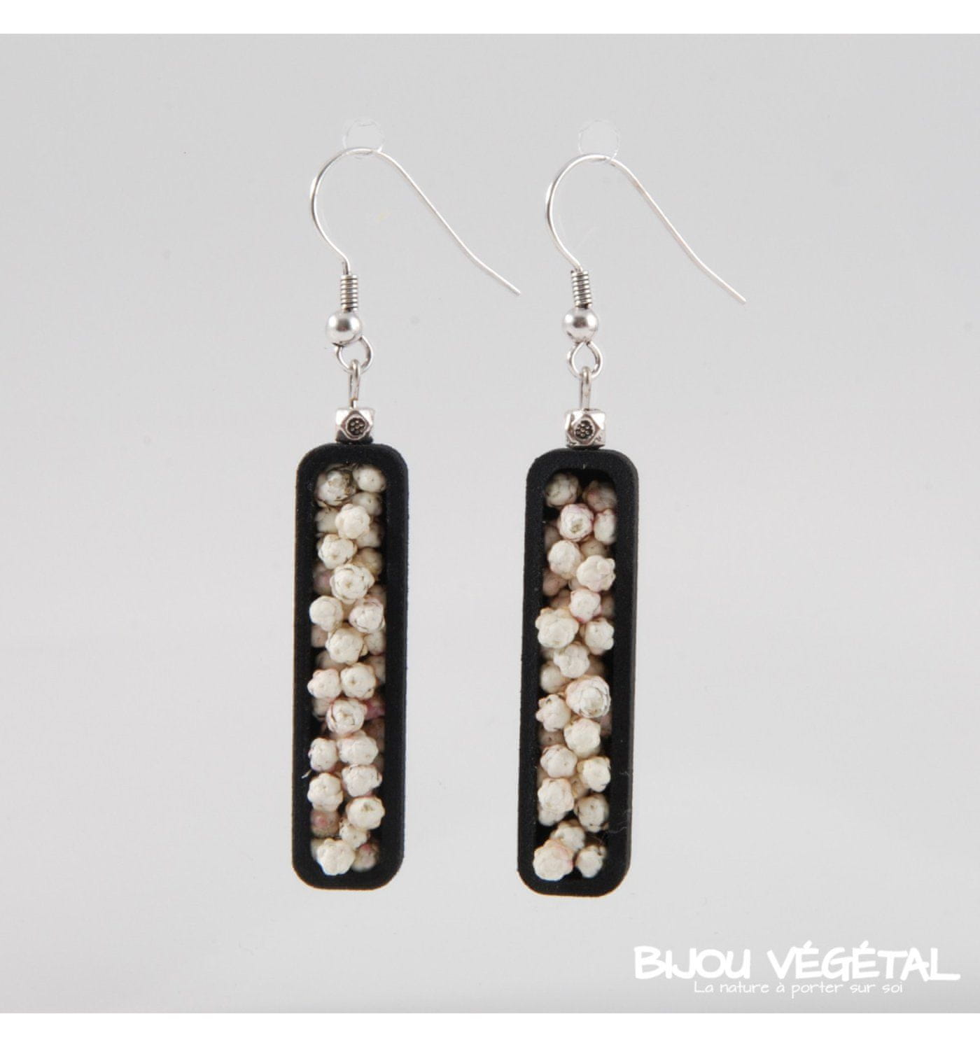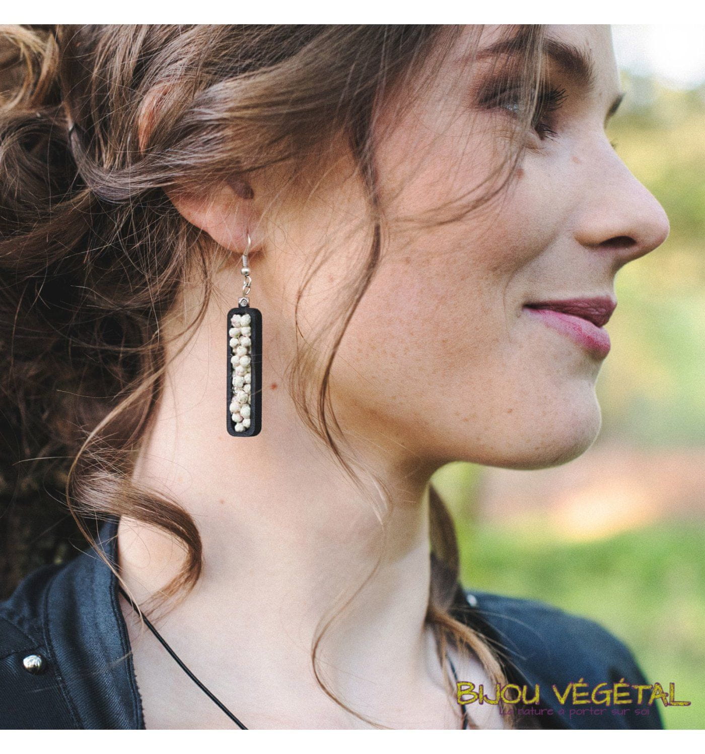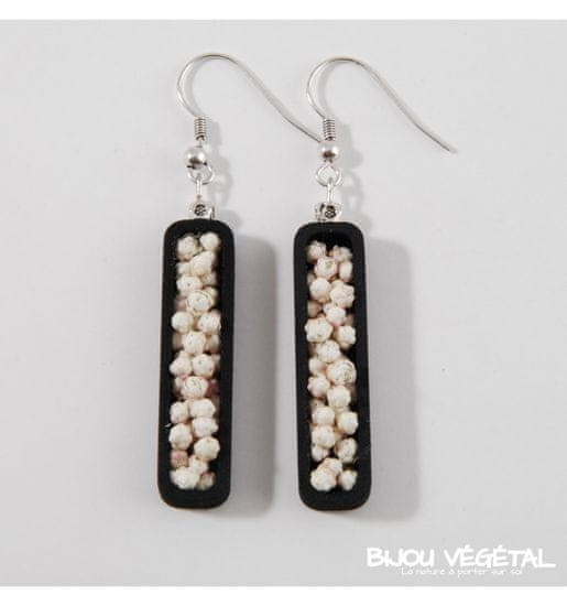 Radis et Capucine Nakit v živo - Jardiniere uhani črne barve s trajnimi belimi cvetovi