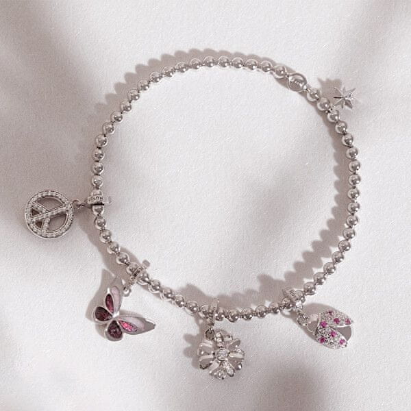 • z zasnovo pikapolonice, ki je okrašena z bleščečimi cirkoni fuksije in prozorne barve,