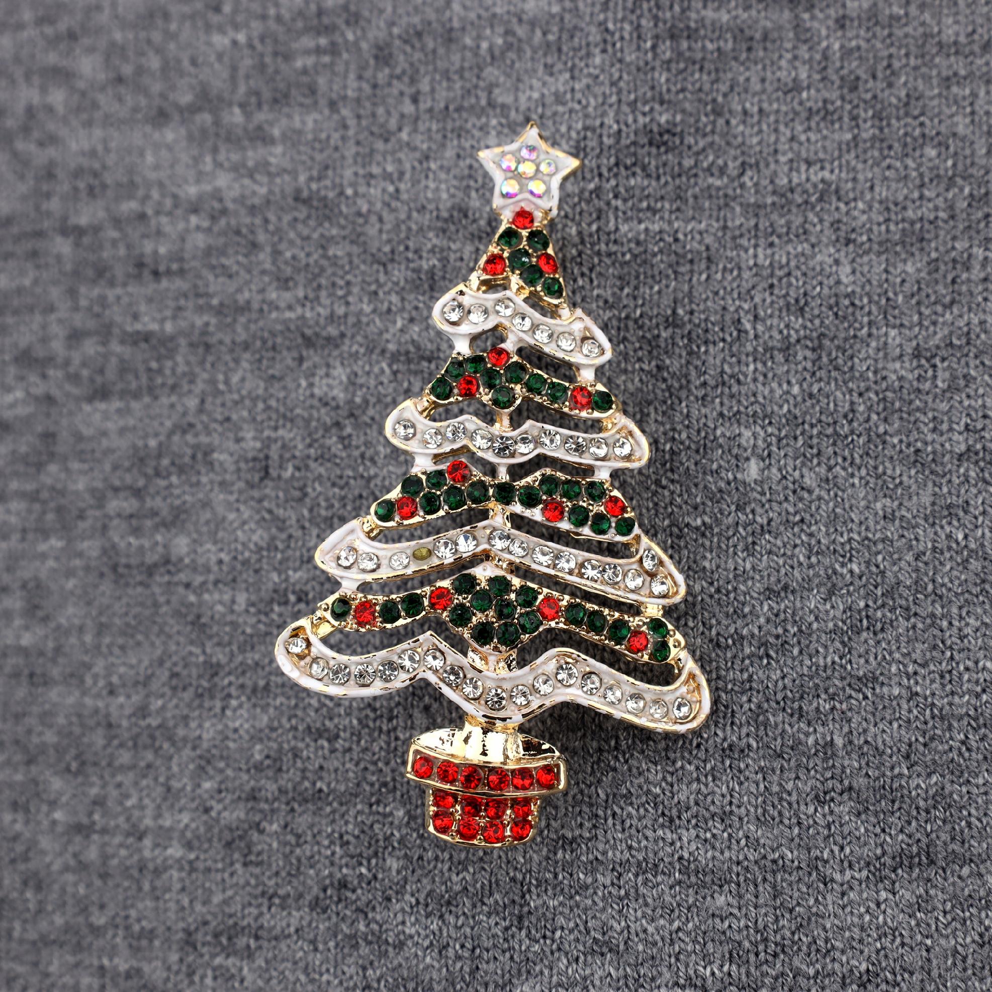 Čudovita broška v obliki božičnega drevesca z zvezdo