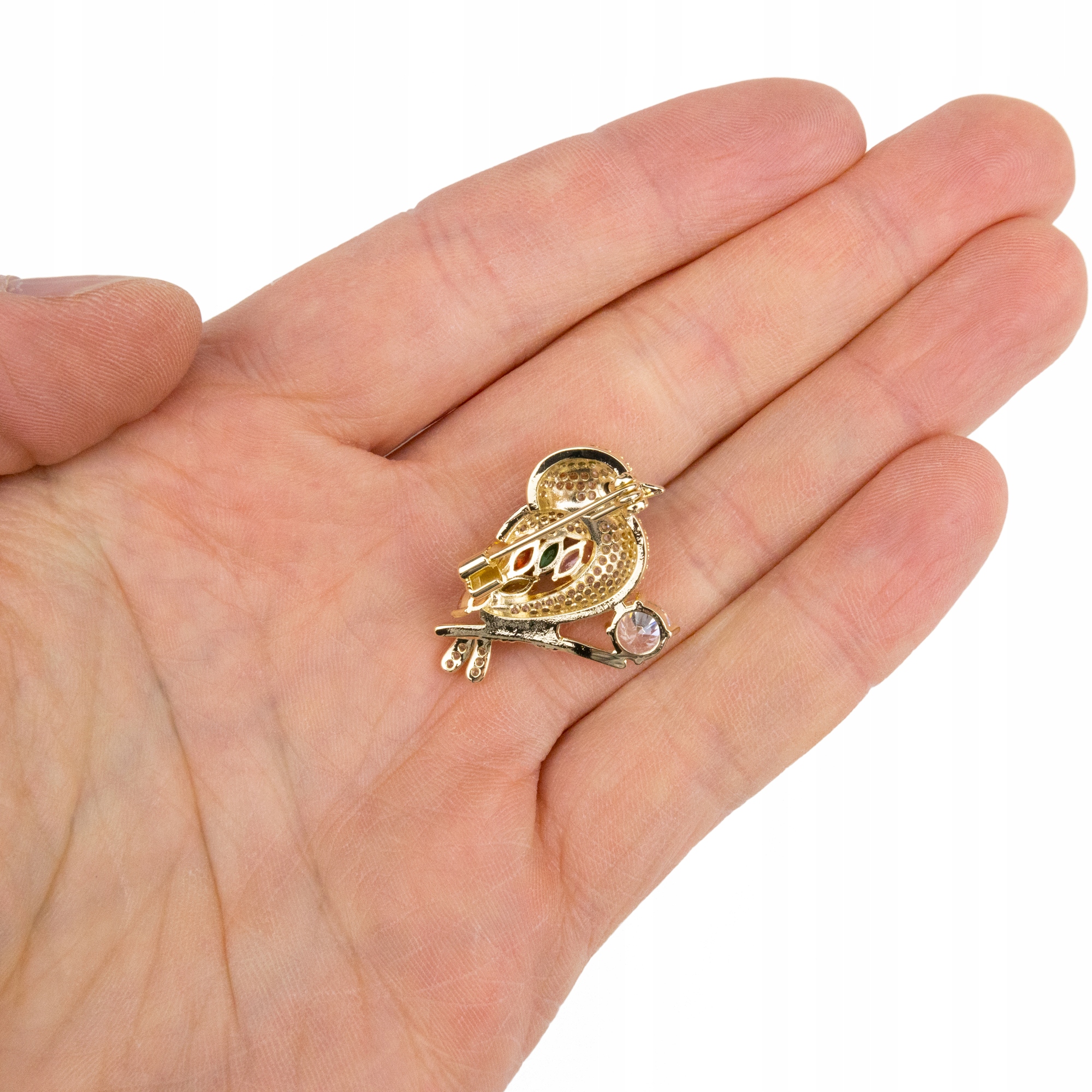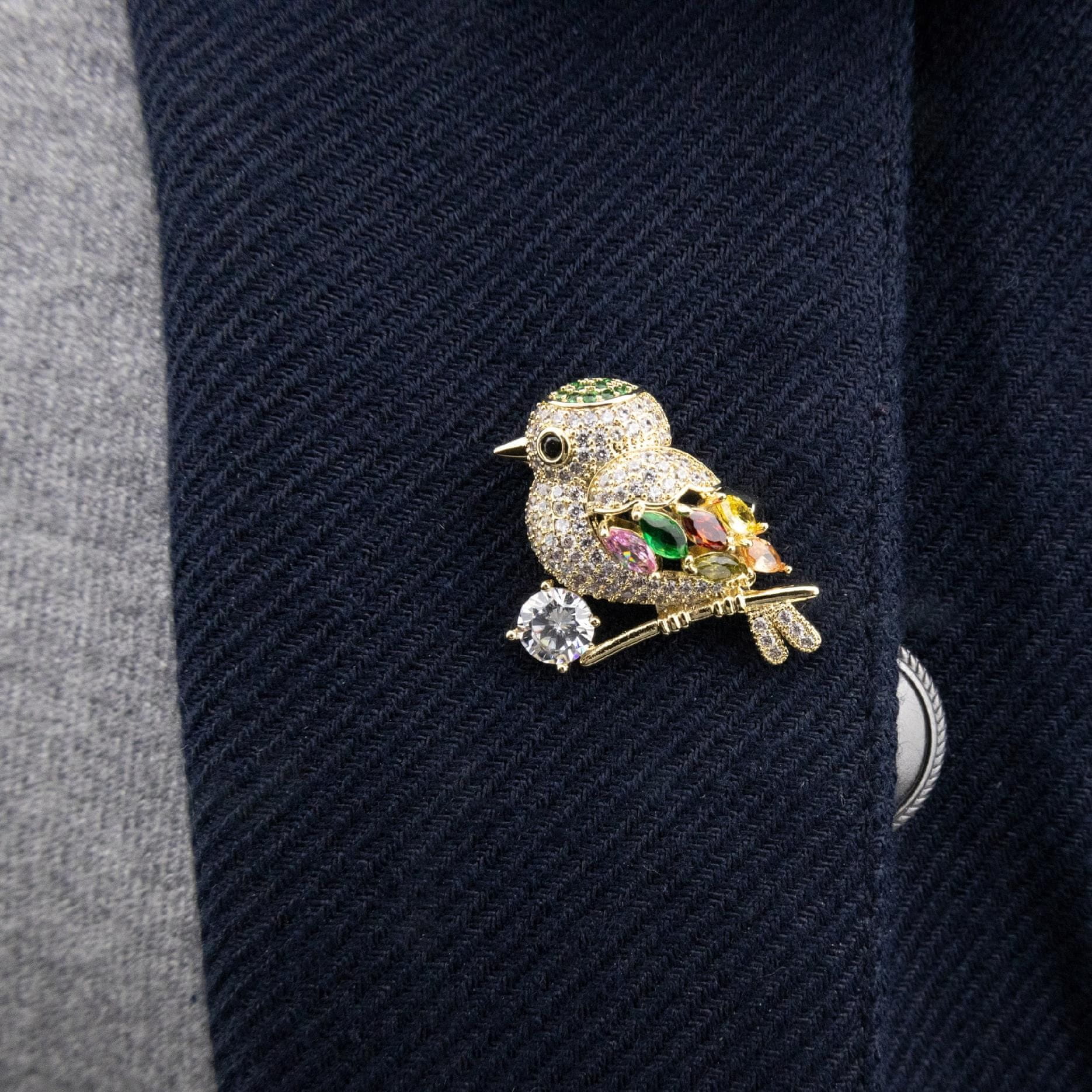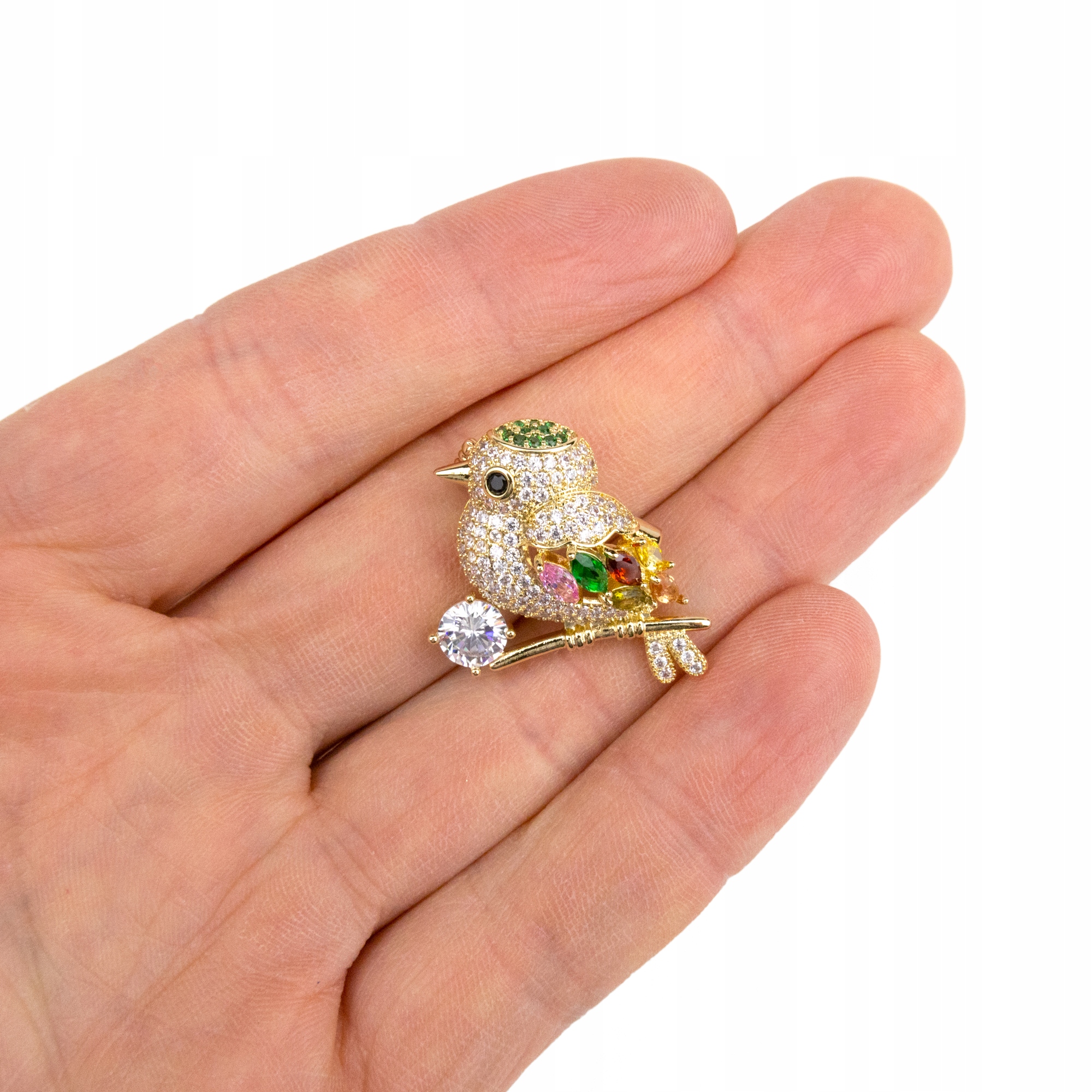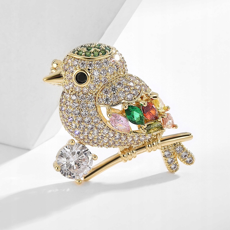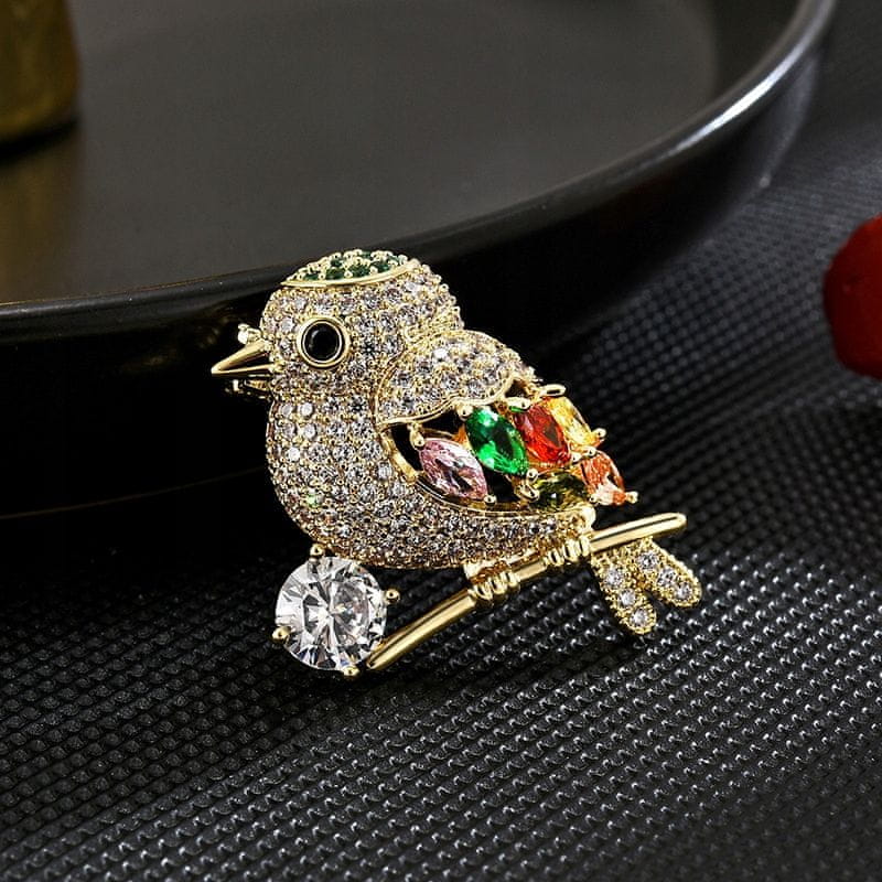 Čudovita broška v obliki vrabca, okrašena s kubičnimi cirkoni in prevlečena s 14-karatnim zlatom