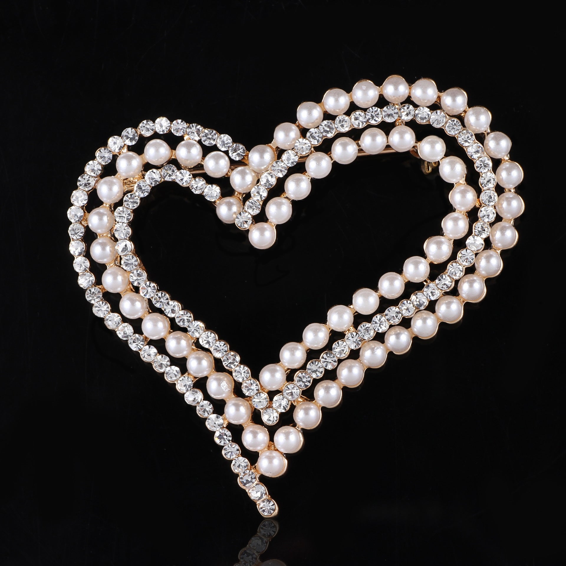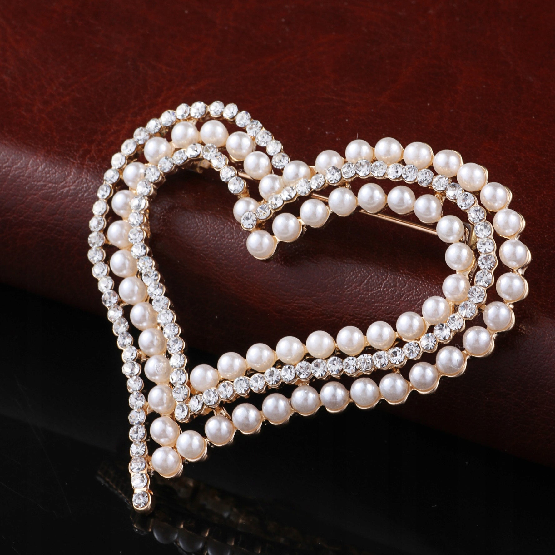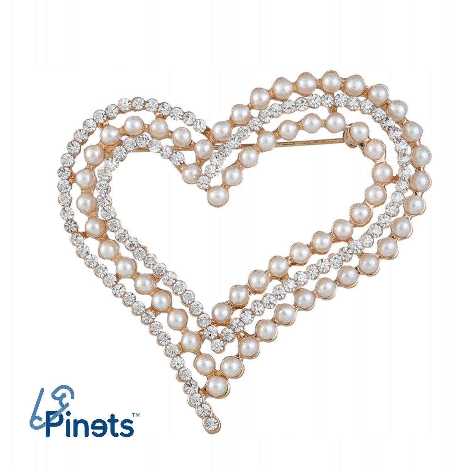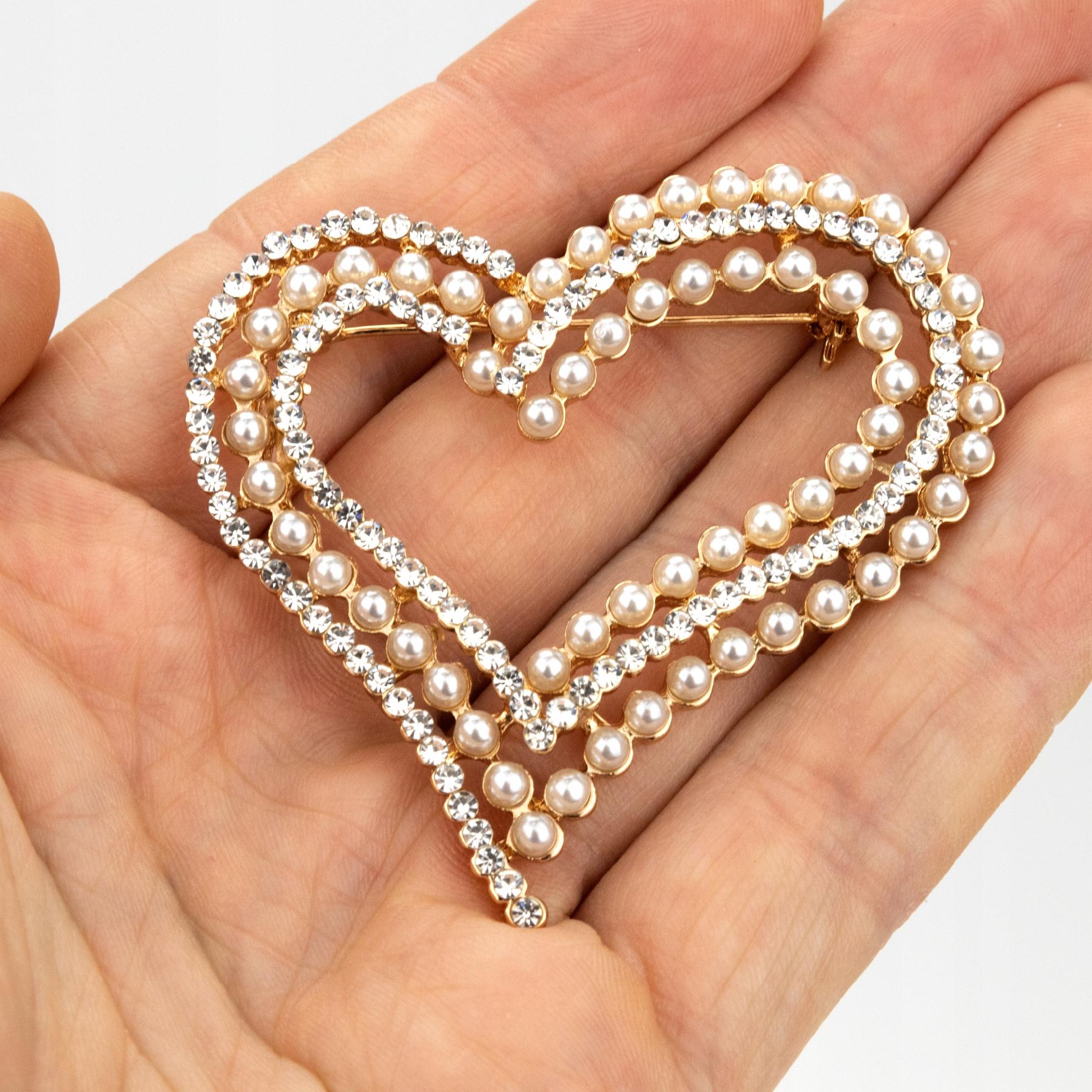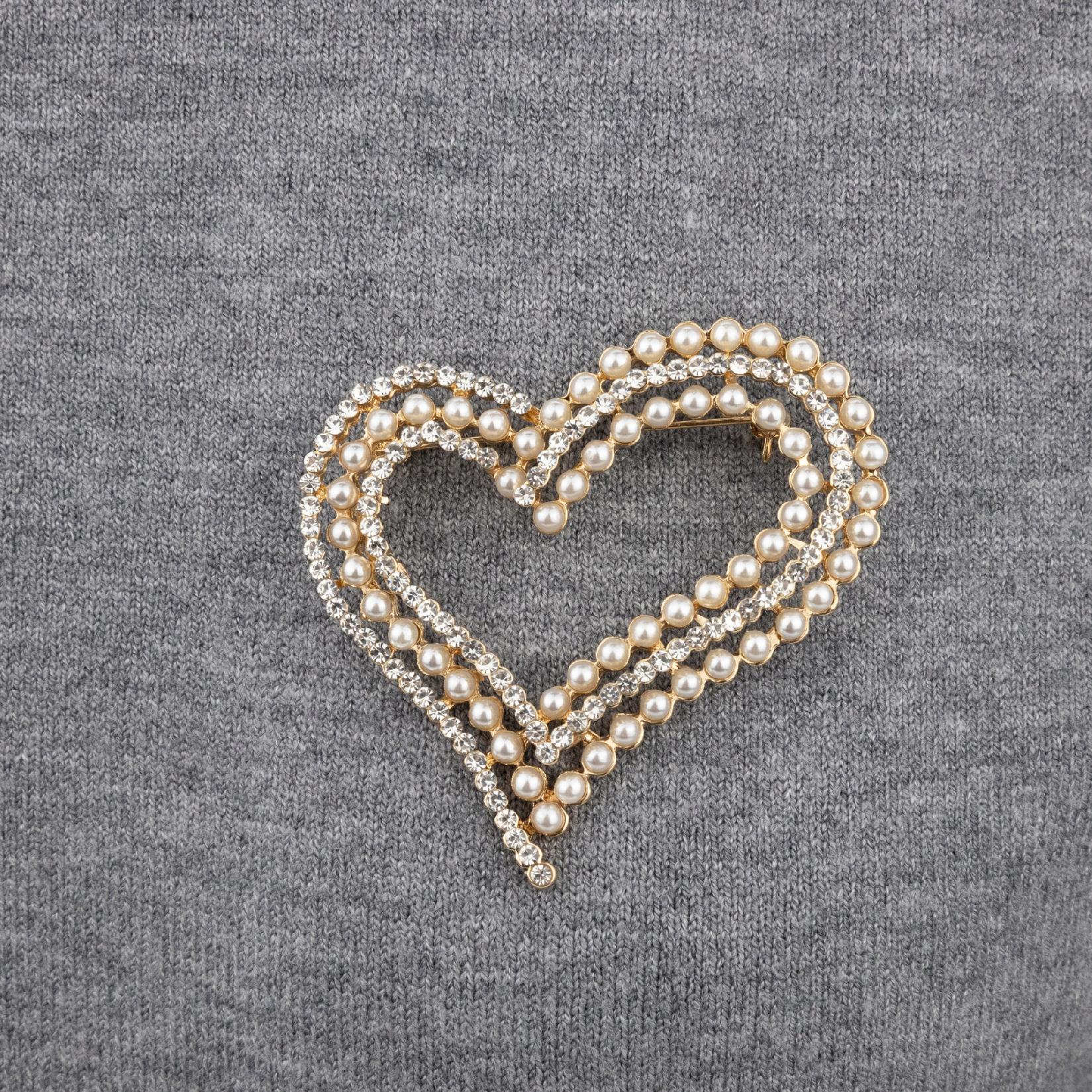 shumee Broška PINETS v obliki srca z biseri in cirkoni