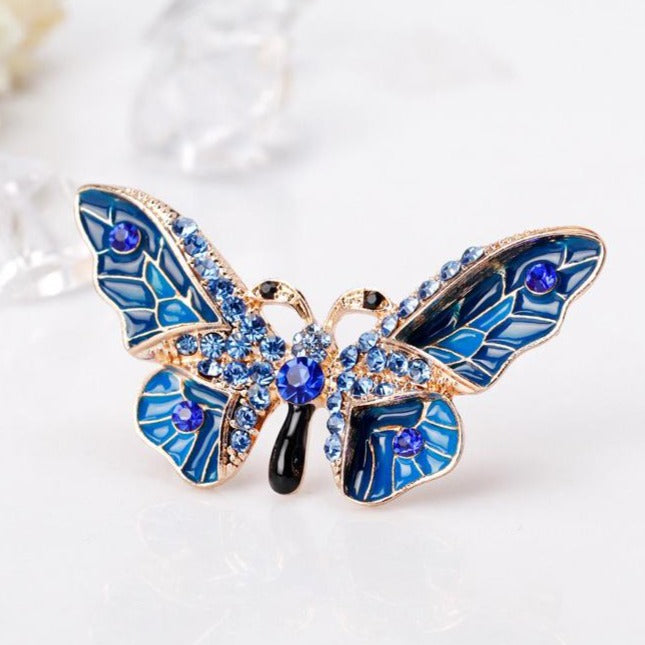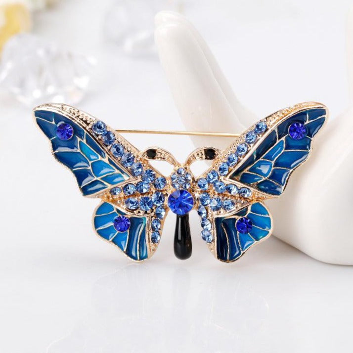Čudovita broška z modrim metuljem in kubičnimi cirkoni