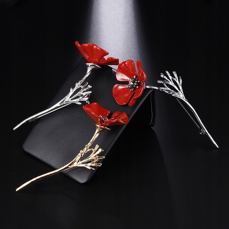 Čudovita broška z motivom makovega cveta in kubičnimi cirkoni
