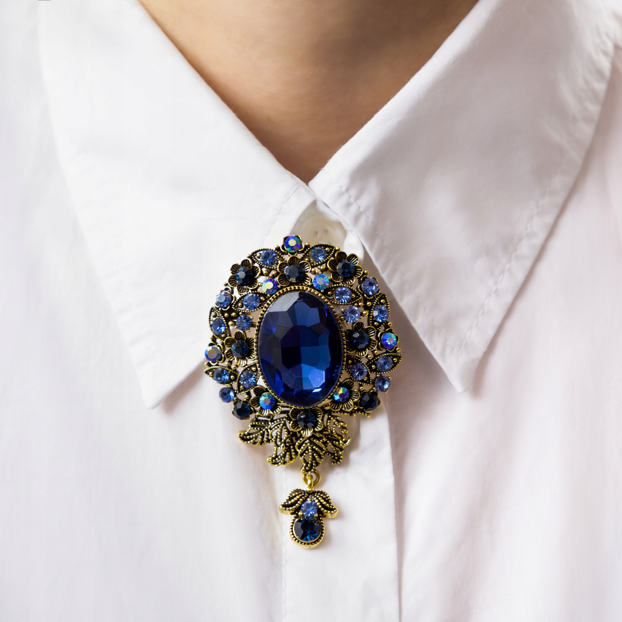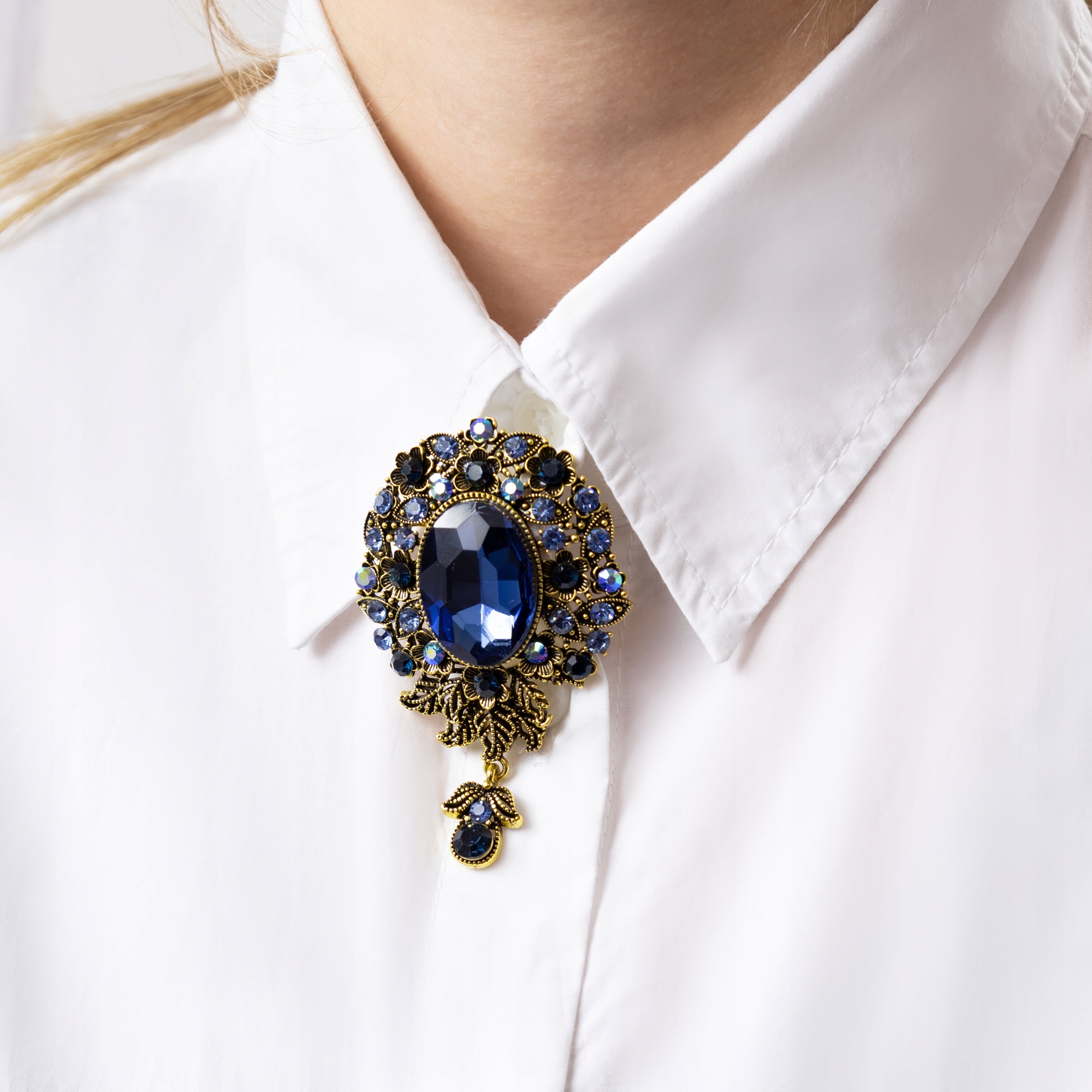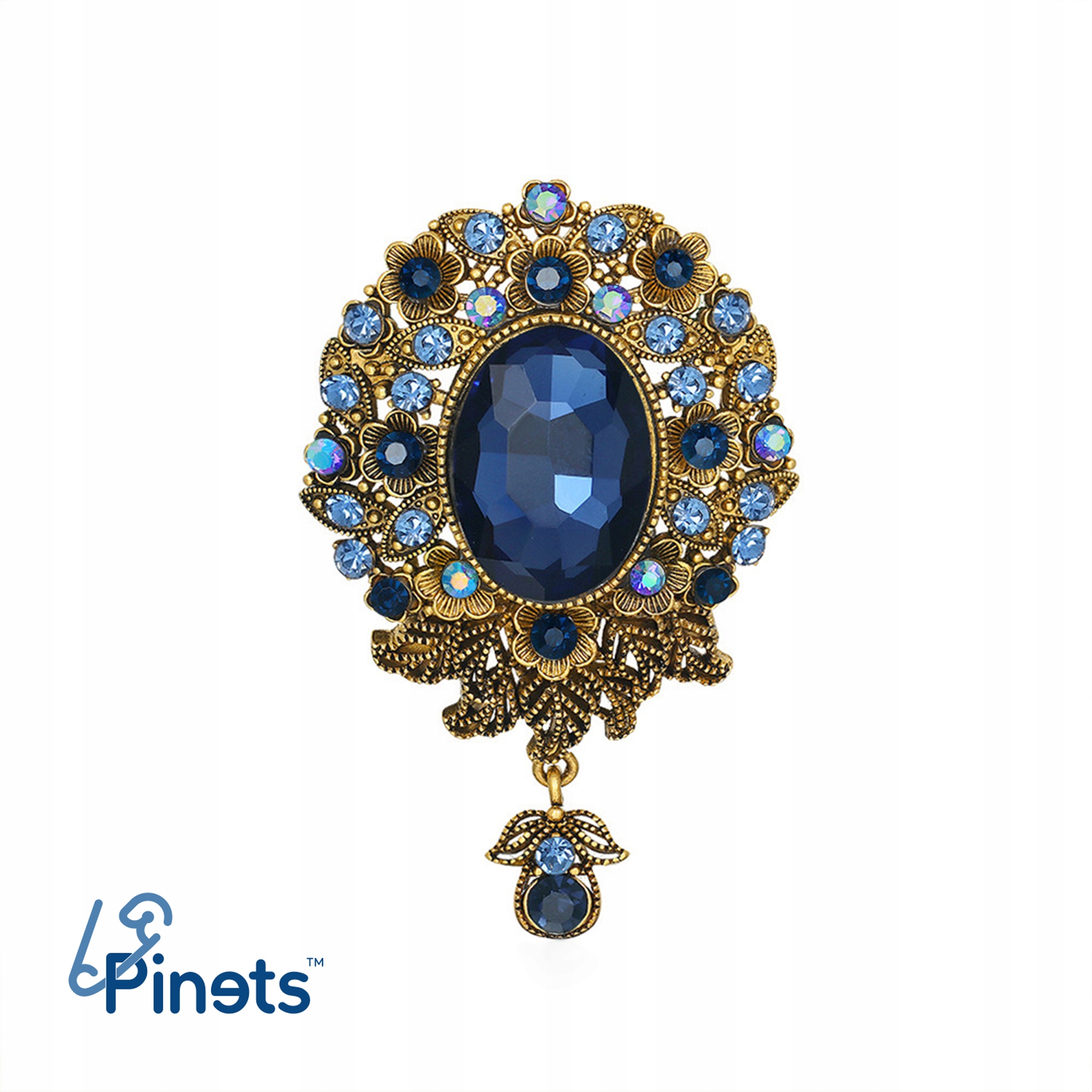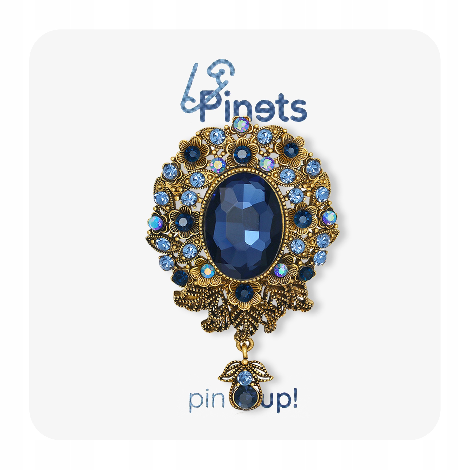 shumee Čudovita baročna BROŠKA PINETS iz starega zlata z modrimi cirkoni