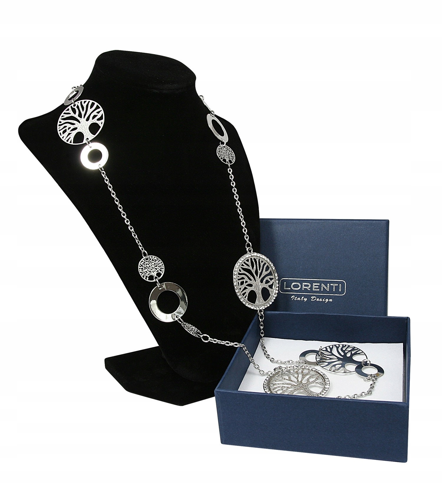 Ta ogrlica poljske znamke Lorenti je izdelana iz zlitine navadnih kovin, železa in brona v srebrni barvi. Okrašena je z okrasnimi kristali. Okrasni kamni so imitacije sintetičnih diamantov iz stekla ali sintetičnega stekla.
