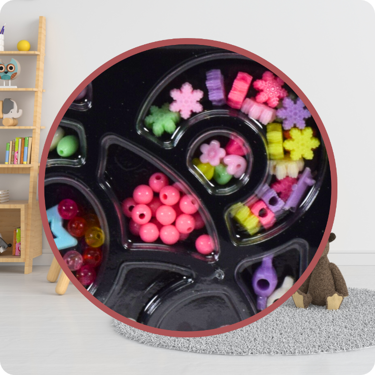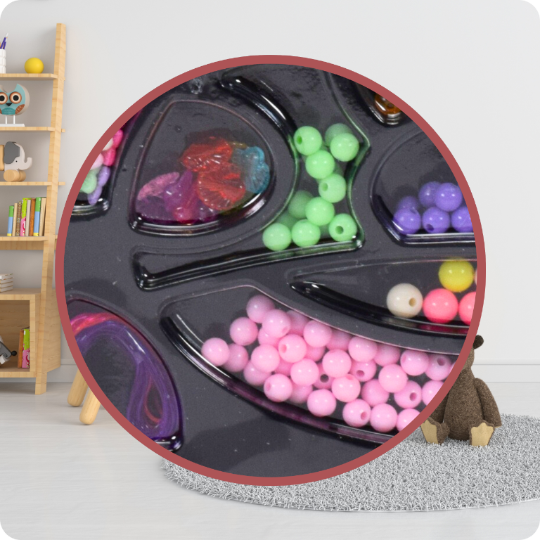 ➡️ Organizator, napolnjen z perlicami različnih oblik in velikosti.