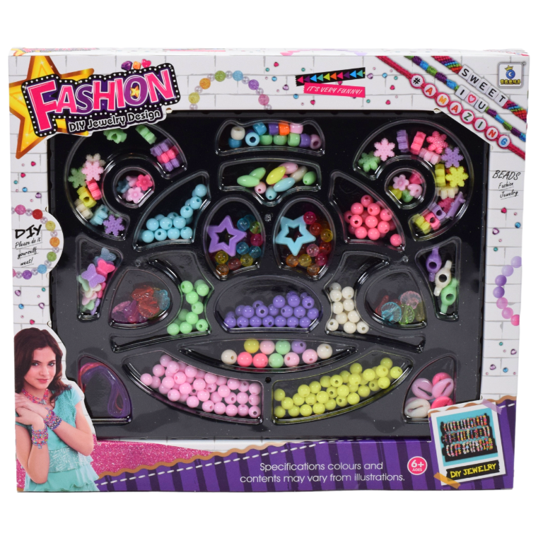 - Komplet vsebuje perlice, obeske, pisane vrvice in kolut ribiške vrvice.