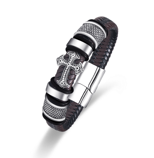 Moška pletena zapestnica s srebrnim križem Magnetna zaponka