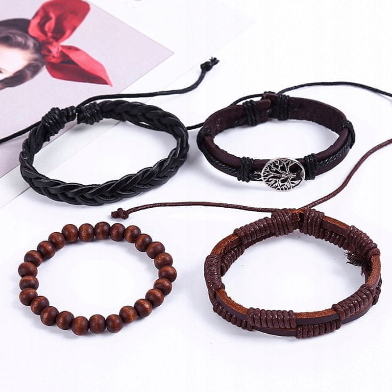 Komplet 4 moških zapestnic – Vintage in ročno izdelani modni dodatki