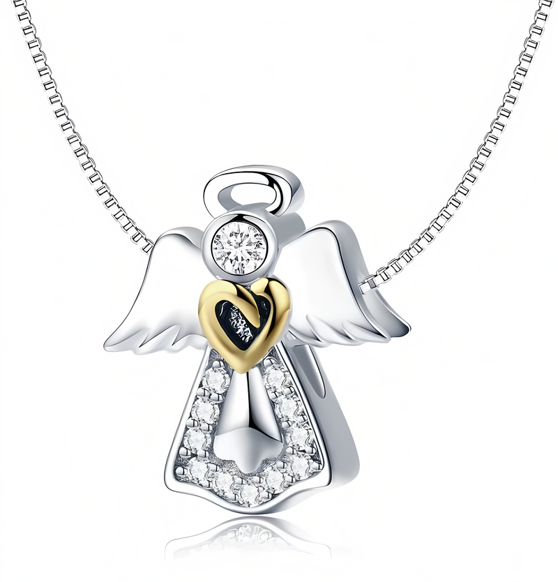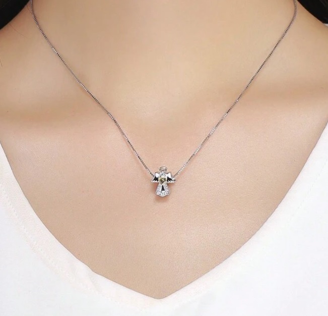 Edinstven obesek, izdelan iz posrebrenega bakra v obliki angela, okrašenega s kubičnim cirkonijem.