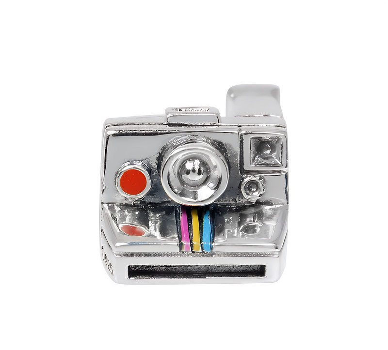 Osupljiv posrebren obesek, ki prikazuje klasičen fotoaparat.
