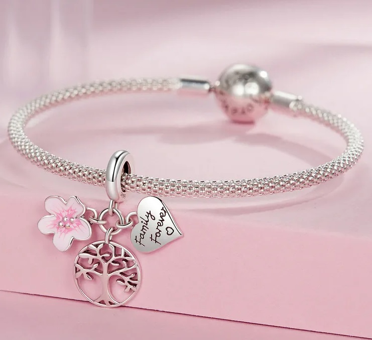 shumee Obeski za Pandora obesek Obesek Drevo življenja Srce Cvet Srebro 925 Trusky Obeski