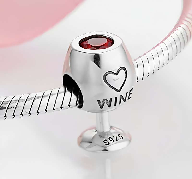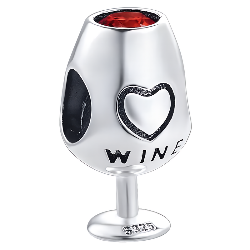 Unikaten posrebren obesek v obliki kozarca rdečega vina.