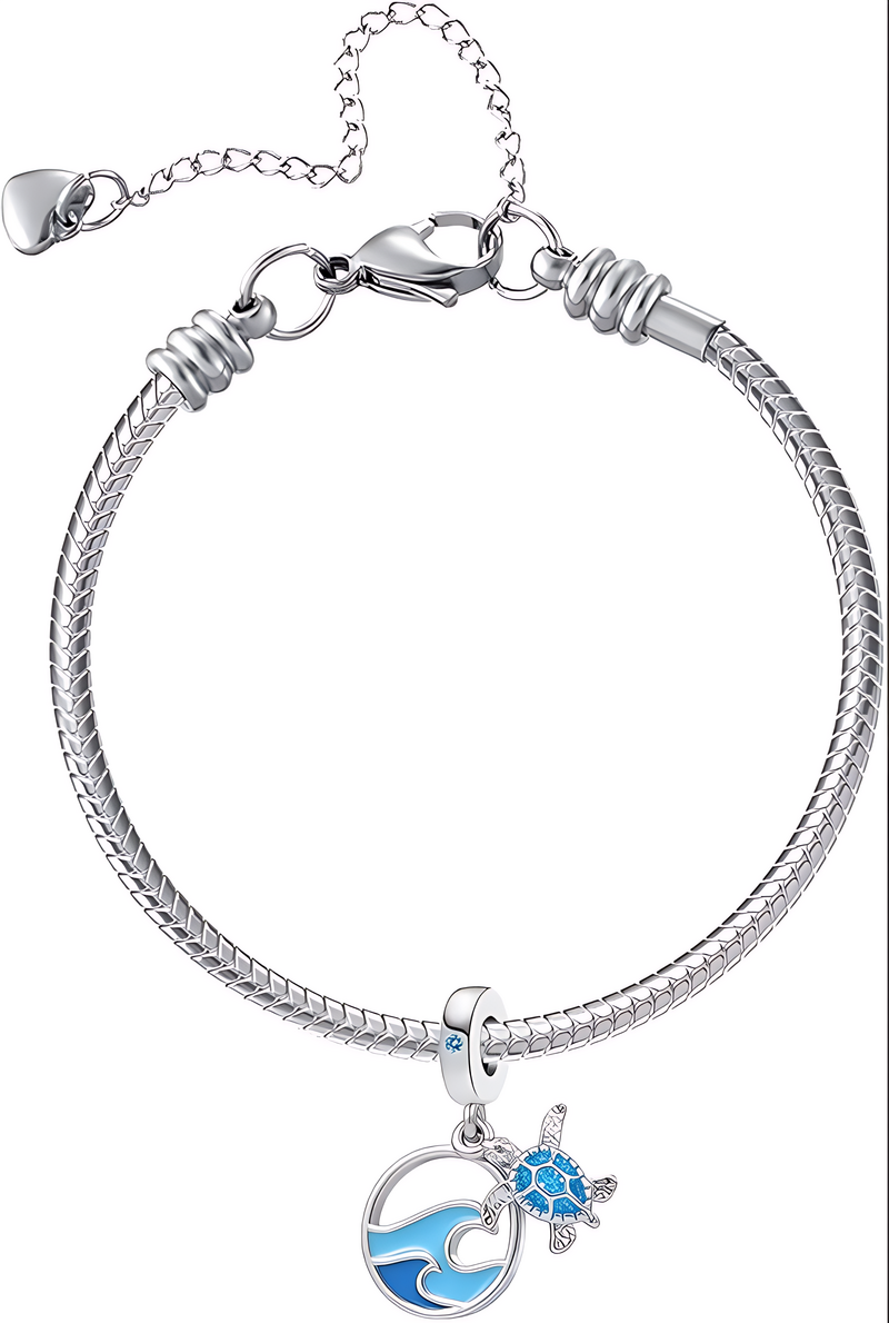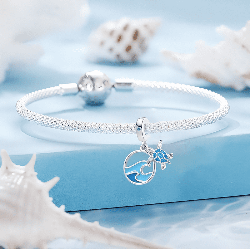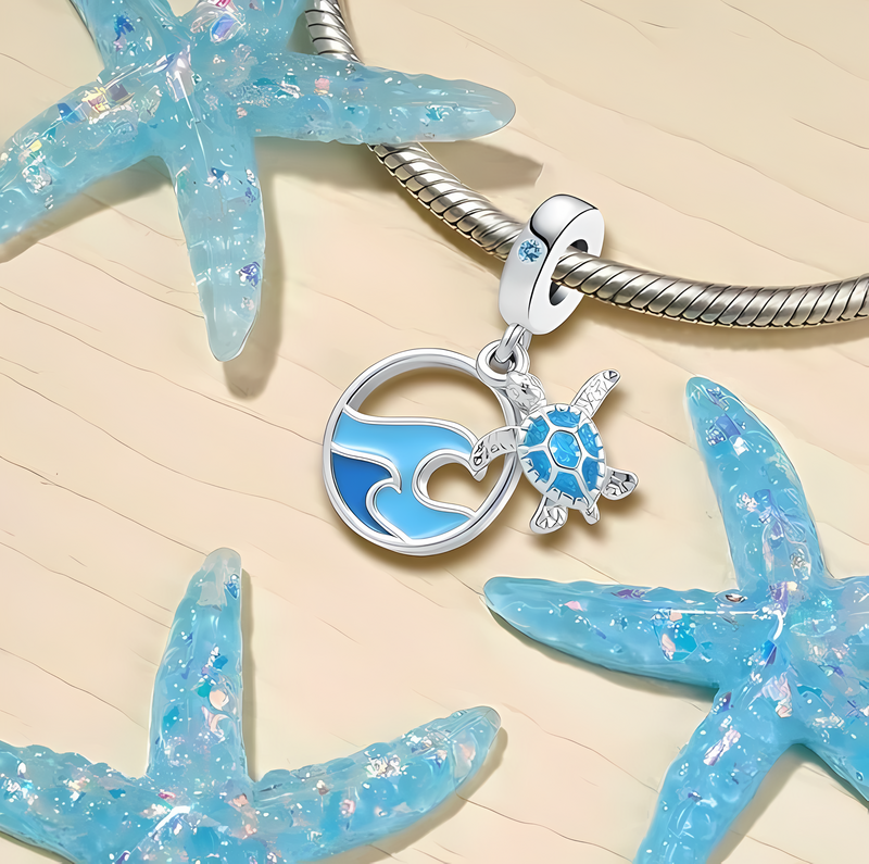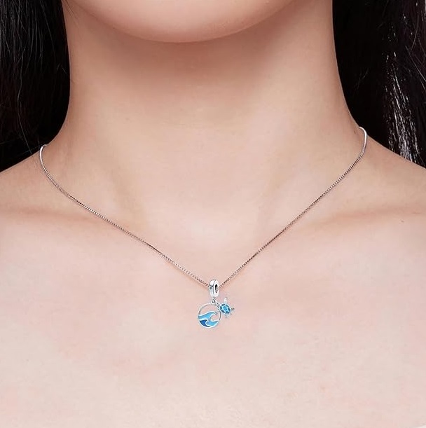 Edinstven posrebren obesek z morsko želvo in morskimi valovi.