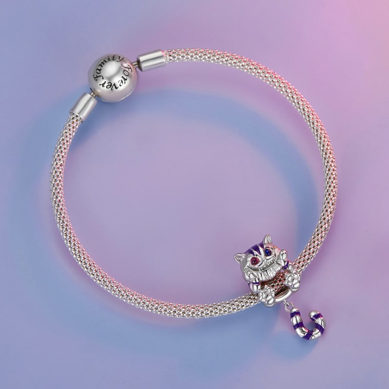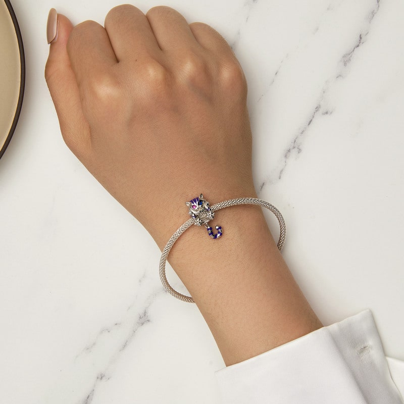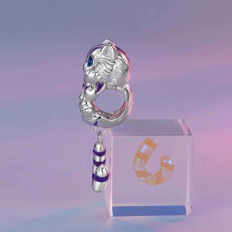 Edinstven obesek, izdelan iz srebra 925. Ta obesek prikazuje pisano, pravljično, domiselno mačko s premičnim repom. Mačje oči so okrašene z modro-rožnatim kamnom. Ta obesek je del kolekcije „Fantastična pravljica“.