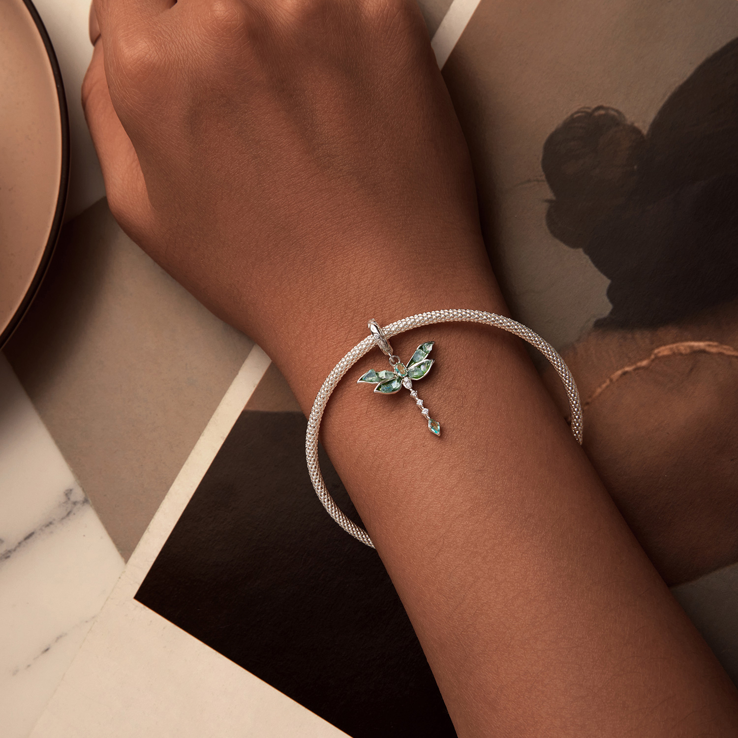Obeski za Pandora obesek z zelenim kačjim pastirjem, srebro 925, Trusky Charms Celoten opis