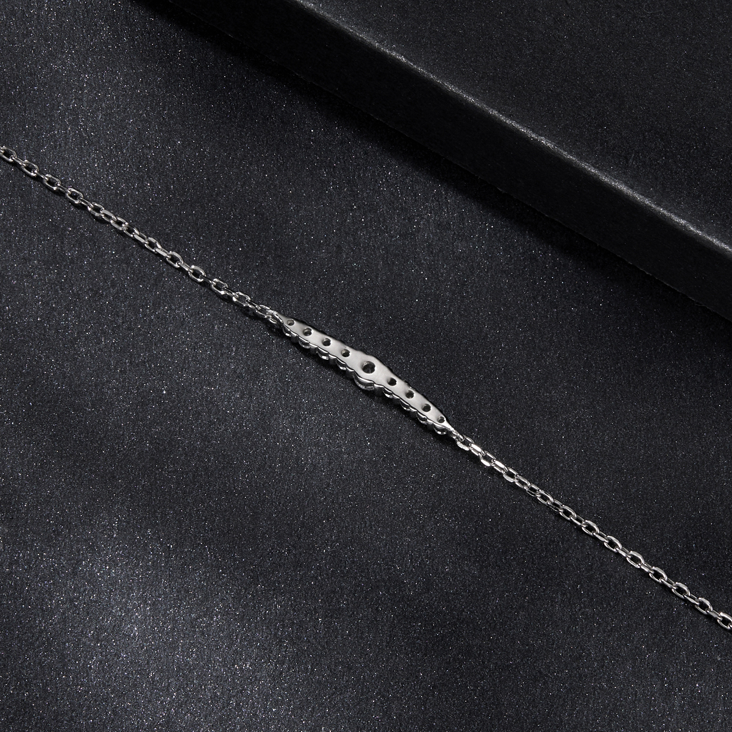 Čudovita, nežna zapestnica iz srebra 925 okrašene v srednjih devet moissanitov različnih velikosti.