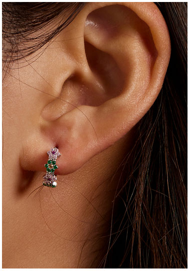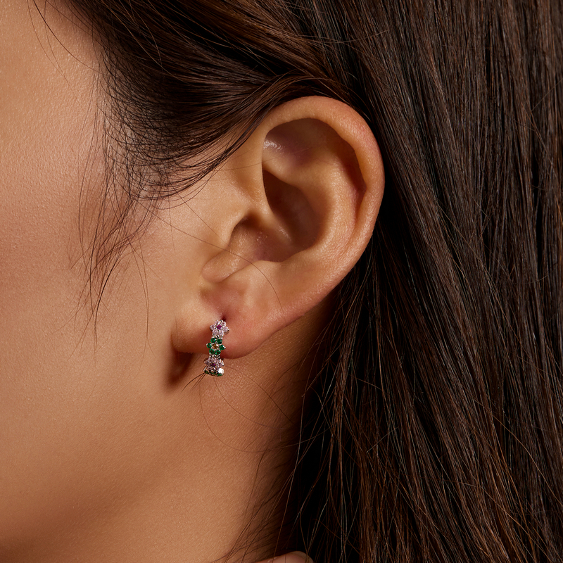 Obročki, okrašeni z barvitimi cirkonskimi cvetovi.